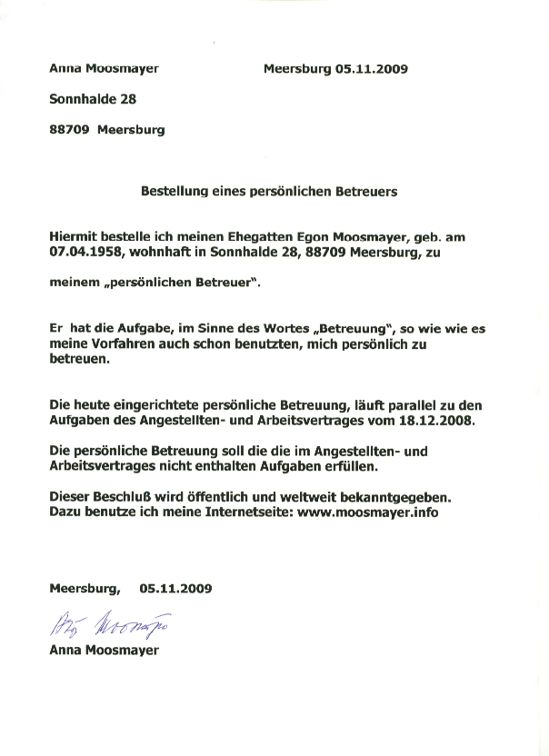 Heute am 05.11.2009 habe ich beschlossen einen Betreuer an meine Seite zu stellen.